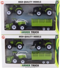 Szórakoztató mezőgazdasági gépkészlet 3 éves kortól kis gazdáknak, amely minden technikarajongónak örömet szerez. Strapabíró kivitel minőségi műanyagból, áttekintően csomagolva papír dobozba, ajándéknak is kiváló.