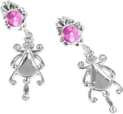 A korona és a fülbevaló elegáns megjelenést biztosít az ezüst szín és a rózsaszín kövek kombinációjának köszönhetően.