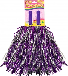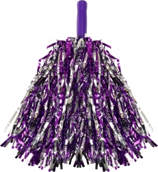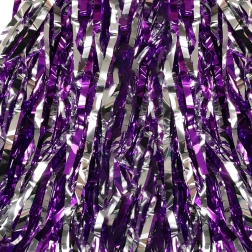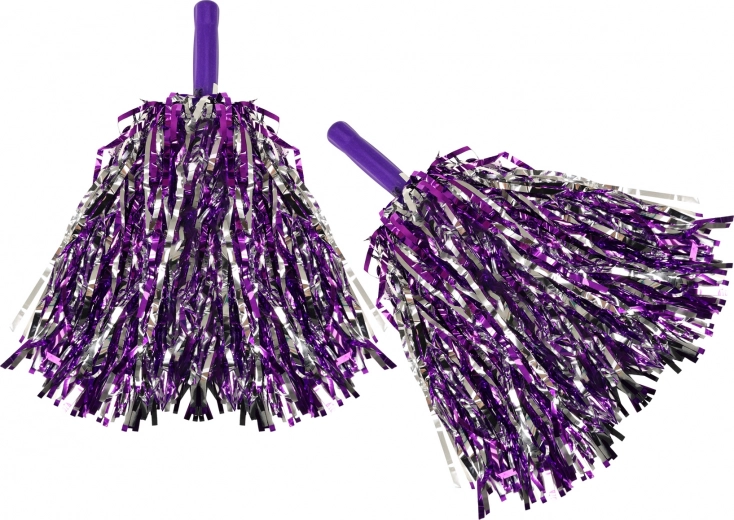 A pom-pom pálca lila és ezüst szalagokból készült, melyek csillogó és feltűnő megjelenést biztosítanak.