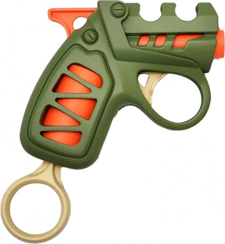HUNTSMAN zsebméretű, felhúzható pisztoly (13 cm), akár 18 m-es hatótávolsággal. A csomagban 3 hablövedék, egyszerű csőbe töltés, két szín: zöld és barna.