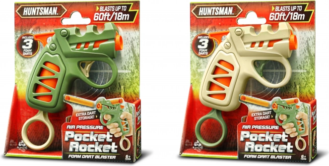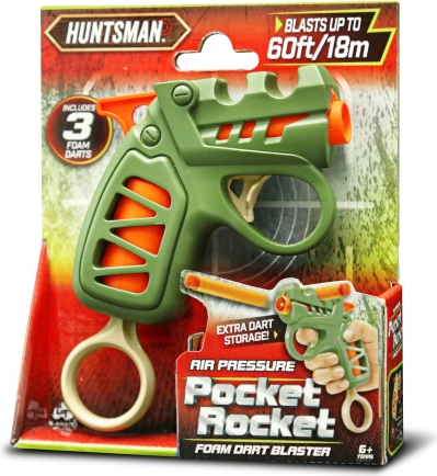 A 13 cm hosszú, kompakt HUNTSMAN zsebpisztoly egyszerű kezelést és akár 18 m-es hatótávolságot kínál. A lövedékeket könnyű a csőbe helyezni, a töltés az alsó részen lévő gyűrű felhúzásával történik, a lövés pedig a ravasz meghúzásával indítható. A csomagban 3 hablövedék található, és elérhető 2 színváltozat – zöld és barna.