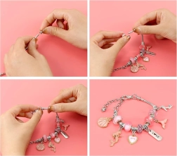 Készíts egyedi karkötőket, pontosan a saját stílusodban. Ez az ezüst kivitelű, rózsaszín és arany akcentusokkal ellátott készlet változatos gyöngy- és medálválasztékot kínál, így minden ékszer eredeti lesz. Az alkotás közben fejlődik a finommotorika, a türelem és a kreativitás – értelmes szórakozás.