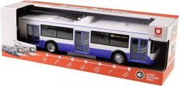 Fedezze fel a városi közlekedés élményét ezzel a kék trolibusszal, amely csehül beszél, és az ajtók nyitásakor megálló-bemondást játszik le. A valósághű részletek 1:43 méretarányban és a 28 cm-es hossz nagyszerű modellé és strapabíró játékká teszik a mindennapi játékhoz.