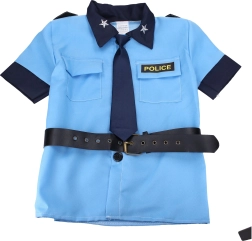 Stílusos gyerek rendőrjelmez farsangra és jelmezes bálokra, 110–120 cm-es méretben. Tartalmaz mindent, amire egy kis törvényőrnek szüksége van: sapka, ing, nyakkendő, öv és nadrág.
