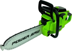 A gyermek láncfűrész valódi motoros láncfűrészre van tervezve, beleértve a részletes elemeket, mint a fogantyú és a lánckardinál, az autentikus játékélmény érdekében.