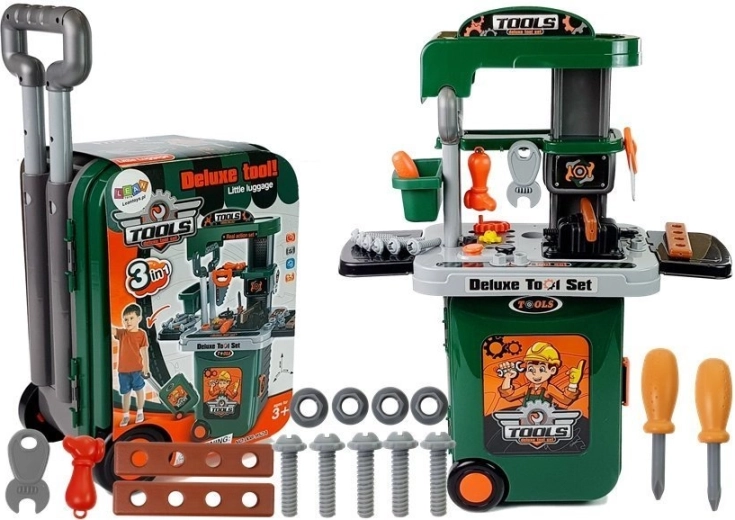 Ha a gyermeke szívesen segít apának a barkácsolásban, ez a hordozható készlet ideális lesz számára. A bőröndben lévő műhely tökéletes dolog, amit mostantól bárhová magával vihet. A kihúzható fogantyú és a hátoldali kerekek lehetővé teszik, hogy maga után húzza. A bőrönd kinyitása után belül megtalálható minden elem, amelyekből saját műhelyt állíthat össze. Közben nem foglal sok helyet. A készlet legnagyobb előnye a rengeteg elem, így gyermeke sok játékot meg tud majd barkácsolva javítani.