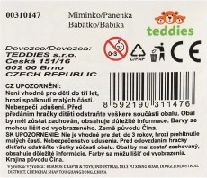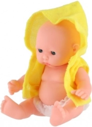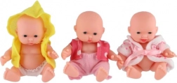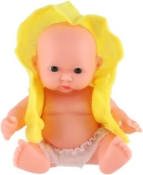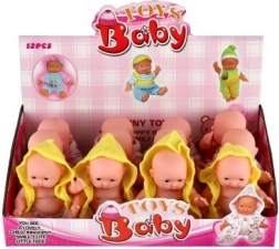Aranyos, 12 cm magas baba merev műanyag testtel és textil ruhácskával, amely minden kis gondoskodót megörvendeztet. 3 különböző változatban kapható, fejleszti a képzeletet és a szerepjátékot, 3 éves kortól ajánlott. Praktikus, 12 darabos display dobozban.