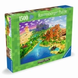 Élvezze a kikapcsolódás óráit a minőségi Minecraft World motívumú Ravensburger kirakóval. A csomag 1500 darabot tartalmaz, a kész kép mérete 80 × 60 cm. Prémium kivitel antireflexiós felületkezeléssel, szabadalmaztatott SoftClick technológiával és hajlítással szembeni ellenállással a pontos illeszkedésért és éles képekért.