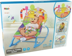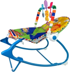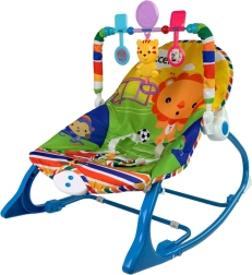 A játékhíd aranyos függő játékai támogatják a látás és a mozgás fejlődését. A tigris meghúzás után dallamot játszik le, a színes függők ösztönzik a megfogást és edzik a kéz–szem koordinációt. Ahogy a gyermek növekszik, egyszerűen eltávolítható a 3 pontos biztonsági öv, és a pihenőszék kényelmes fotellé alakul.
