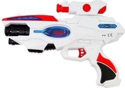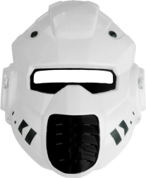 Ez a kozmikus felszerelés remek ajándék a sci-fi rajongóinak. A visszafogott tónusok piros és korallszínű akcentusokkal első pillantásra magával ragadnak. A pisztoly a ravasz meghúzására világít és hangot ad ki, így különösen sötétben érvényesül. A maszk fehér-szürke kivitelben téglalap alakú szemnyílással, szájnyílásokkal és rugalmas gumipánttal rendelkezik a kényelmes és biztos viselésért.