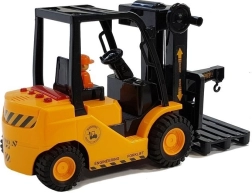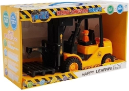 Emeld és engedd le a rakományt a forgótárcsa segítségével. A gyerekek gyakorolják a finommotorikát és valósághűen utánozzák egy igazi targonca munkáját.