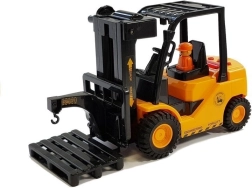 Ez a részletgazdagon kidolgozott targonca közelebb hozza a gyerekekhez az ipari technika világát. A precíz forgóvezérlővel könnyedén emelhetők és süllyeszthetők a villák, míg a kampó különféle rakományok mozgatását teszi lehetővé. A játék egyszerre szórakoztató és fejlesztő – támogatja a finommotorikát, a kéz-szem koordinációt és a képzelőerőt.