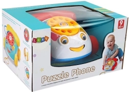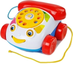 A játéktelefon csavarható számtárcsával rendelkezik számokkal, amely mozgás közben zümmögő, csilingelő hangot ad. Emellett kerekekkel van ellátva, játék közben, húzáskor a telefon szemei és a nyelve mozognak. A gyermek játék közben fejleszti kézfunkcióit, különösen a finommotorikát. A különböző színek vonzzák a tekintetet, így a gyermek megtanulja megkülönböztetni a színeket. További előny, hogy a fülhallgatón lévő gomb megnyomására bohóchang hallatszik.