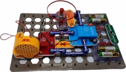 A pattintós rendszer az áttekinthető rácslapon lehetővé teszi az alkatrészek gyors összekapcsolását és a biztonságos kísérletezést elektronikával – ideális kezdőknek és iskoláknak.