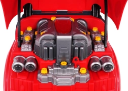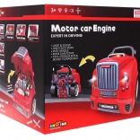 A motorháztető alatt egy nagy motor vár, amely csavarozható és részekre szedhető – tökéletes a finommotorika és a logika fejlesztéséhez.