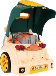 A csomag része egy szerszámkészlet és sok csavar, amelyekkel a gyerekek újra és újra szétszedhetik és összerakhatják a motort és a kerekeket. A játék fejleszti a manuális készségeket, a kreativitást és a műszaki gondolkodást. Tápellátás: 3× AA 1,5 V (nem tartozék).