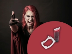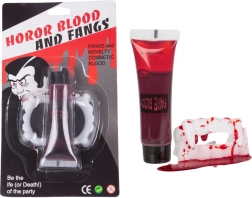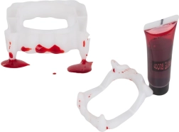 Válj igazi vámpírrá pár másodperc alatt. A piros akcentusokkal díszített fehér műanyag agyarak a friss vért utánozzák, és a tubusos hamis vérrel együtt autentikus horrorhatást keltenek sminkhez és jelmezes használathoz. Tökéletes Halloweenre, farsangi bálra, tematikus bulikra, valamint film- és fotóprojektekhez.