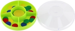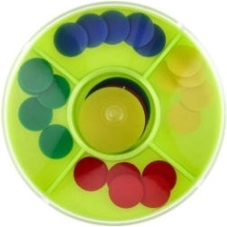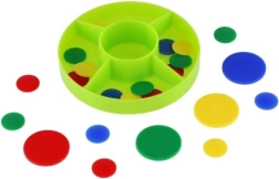 Gyerekjáték Bolhák egy szórakoztató játék, amely fejleszti a finommotorikus készségeket és a koncentrációt a gyerekeknél. A csomag négy különböző színű korongkészletet tartalmaz, mindegyik öt kis koronggal és egy nagy koronggal. A játékhoz tartozik egy doboz számozott rekeszekkel, mely sok játékkombinációt tesz lehetővé. A feladat az, hogy a nagy bolha segítségével minden kis bolhát a doboz rekeszeibe juttasson.