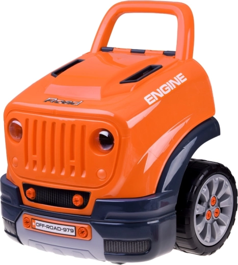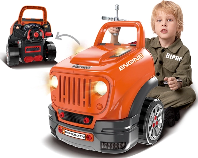 Csavarja ki a csavarokat, vegye le a gumit és a felnit, majd helyezze vissza. A gyerekek fejlesztik finommotorikájukat és a kéz–szem koordinációt.
