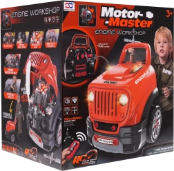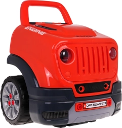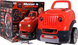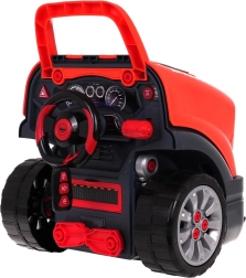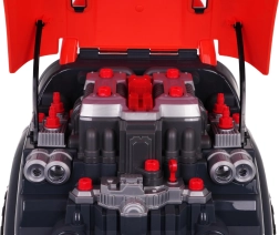 A motorháztető alatt egy nagy motor található, amely csavarok és szerszámok segítségével szétszedhető és újra összerakható. A gyerekek gyakorolják a finommotorikát, és megértik, hogyan működik az autó.
