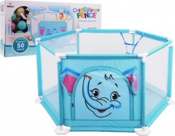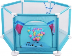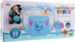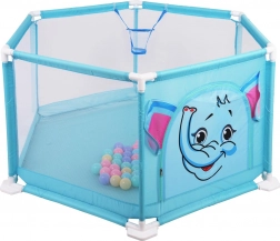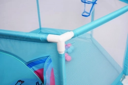 A csomag része 50 színes labda, belül pedig dobókosár is található, amely támogatja a finom- és nagymozgások fejlődését és a játékos aktivitást. A járóka könnyen hordozható, beltérre és kültérre egyaránt alkalmas, felületei pedig könnyen karbantarthatók.