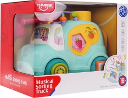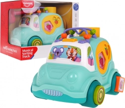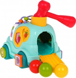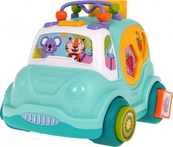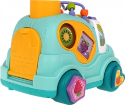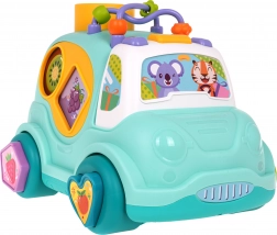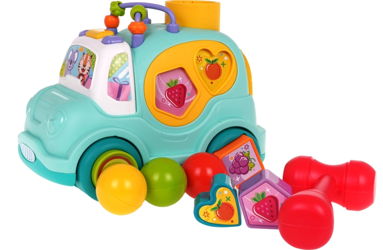 Ez a színes busz órákon át tartó szórakozást és tanulást kínál egyben. Az oldalakon és a kerekeken formaválogató nyílások találhatók, a tetőn pedig labdabemenet, ahová a gyerekek a kalapáccsal örömmel üthetik be a labdákat. A labdák belsejében csörgők vannak, így a játék még szórakoztatóbb és érzékszervileg ingergazdagabb.