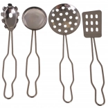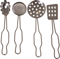 A csomag része a fogó, a merőkanál, a lapát és a lyukacsos kanál is – minden, amire a gyerekeknek szükségük van a főzéshez és a tálaláshoz.