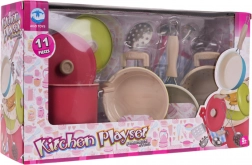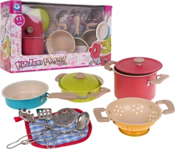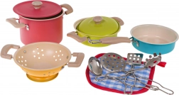 Színes gyermek edény- és konyhai kiegészítő készlet – 11 részes, fém