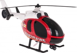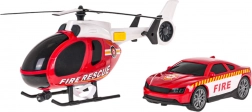 Az interaktív tűzoltó szett egy masszív helikoptert és egy gyors tűzoltóautót kombinál a valósághű mentős játékhoz. A helikopter gombnyomásra első és hátsó világítást, valamint autentikus motor-, sziréna- és repüléshangokat indít. Az autó szabadonfutó meghajtással és gumírozott gumiabroncsokkal bármilyen felületen simán gurul. A helikopter rotorjai kézzel forgathatók a még nagyobb élményért.