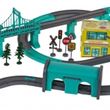Teljes készlet sínekkel, állomással, híddal, alagúttal és kiegészítőkkel, amely lehetővé teszi a pálya és a játékszcenáriók folyamatosan új változatainak építését.