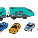 A 2× AAA elemmel (nem tartozék) működő vonat előre halad, a vagonok pedig erős mágnesekkel kapcsolódnak a könnyű és stabil összekapcsolásért.