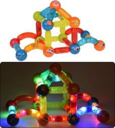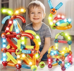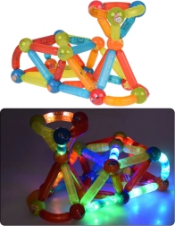 A mágneses építőkészlet lehetővé teszi különböző síkbeli és háromdimenziós struktúrák létrehozását, támogatja a kreatív játékot és a motoros és logikai készségek fejlődését.