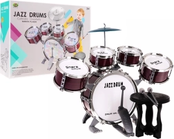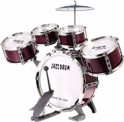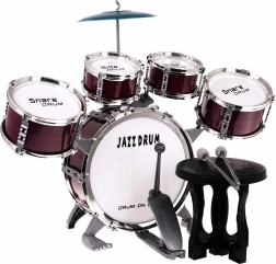 Tartalmazza az összes szükséges részt: öt dob, tányér, dobverők és szék.