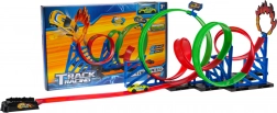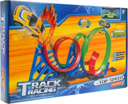 Gyors Hurok Versenypálya tökéletes választás 3 éves kortól. Ez a pálya vonzó 360°-os hurkokkal és színes kivitelével kiváló minőségű műanyagból készült, pull-back meghajtású autóval kiegészítve.