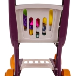 Az interaktív gyermek bevásárlókosár remek választás kreatív boltos és konyhás játékhoz. A kék gomb megnyomására három dióda (zöld, piros, kék) felgyullad, és vidám dallamok szólnak, fokozva a vásárlás hangulatát. A kosár könnyű, mégis stabil, a simán forgó kerekeknek köszönhetően pedig beltérben is könnyen irányítható.
