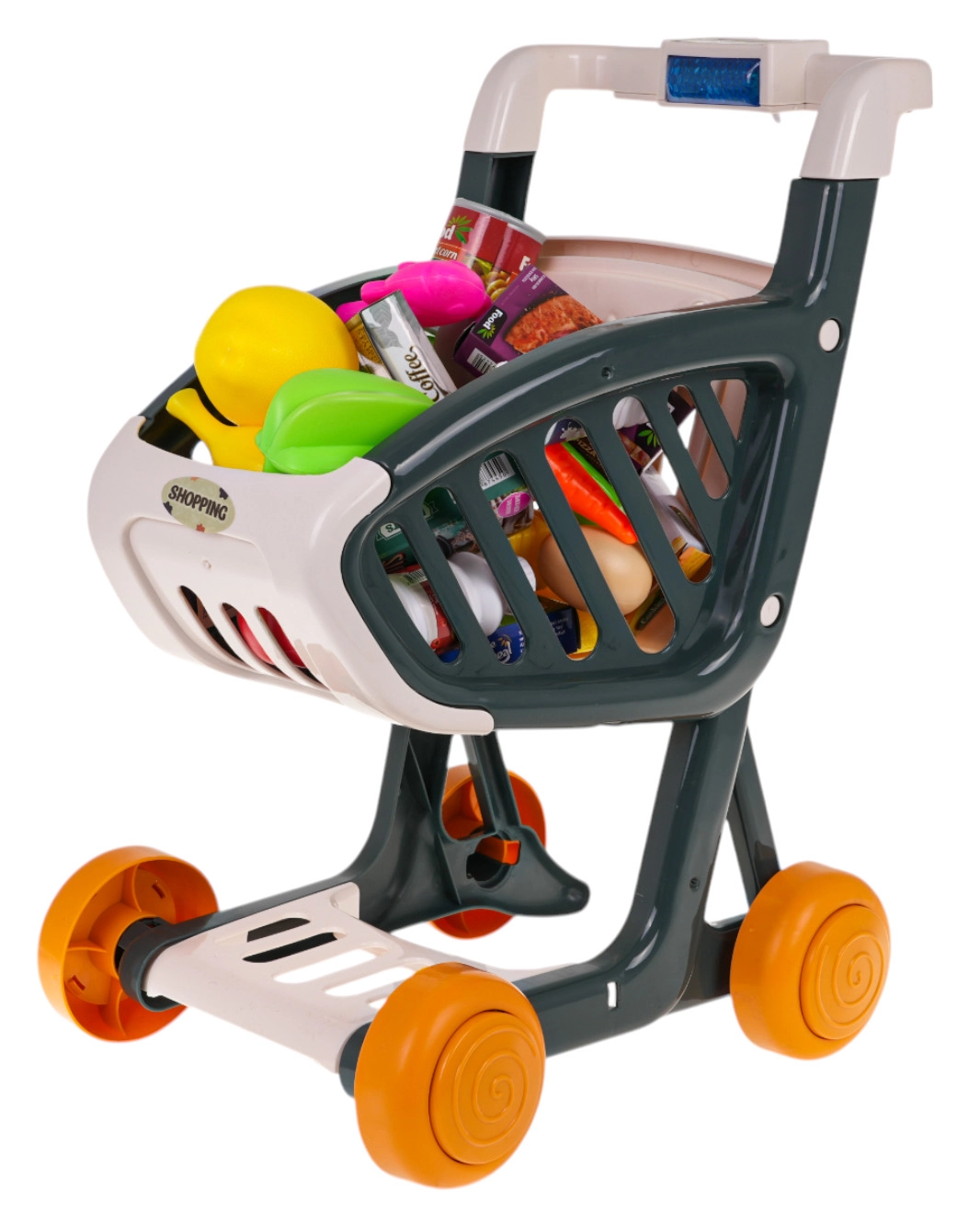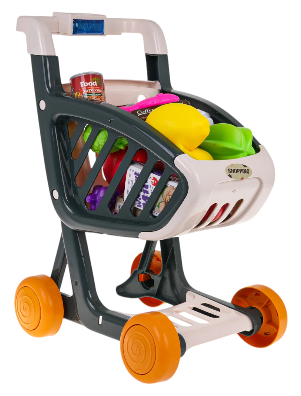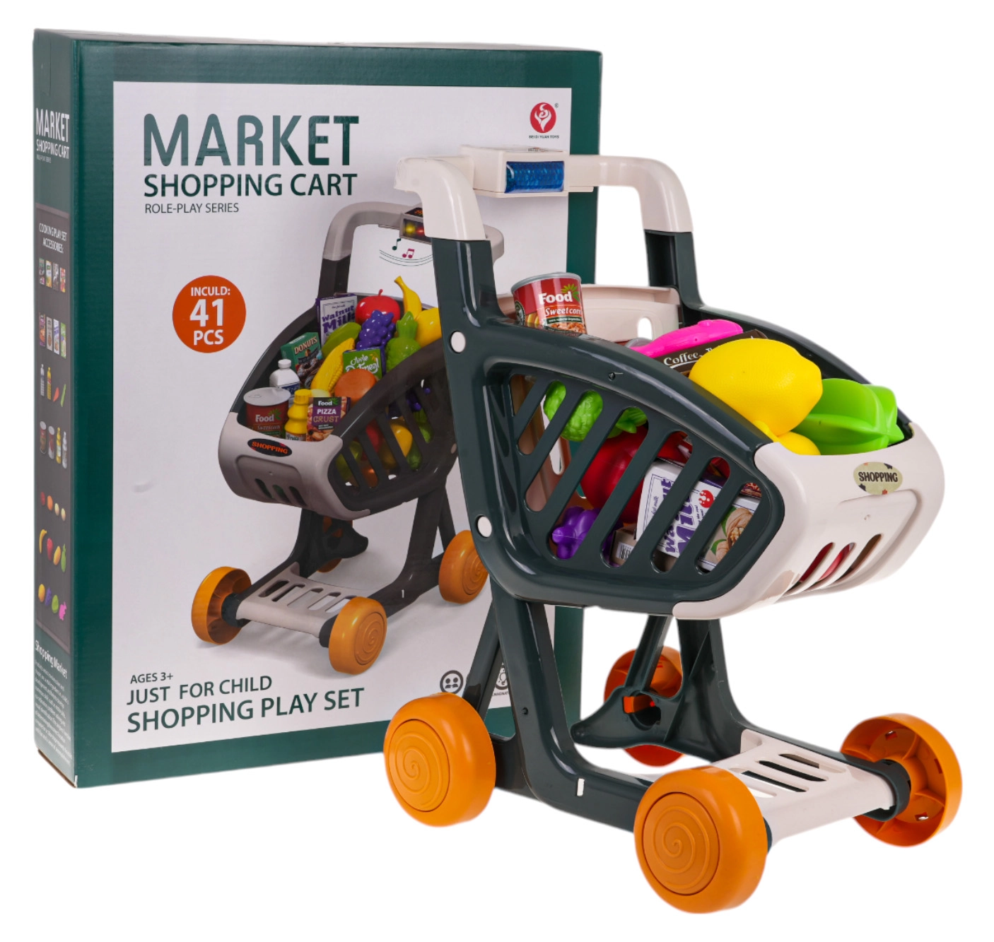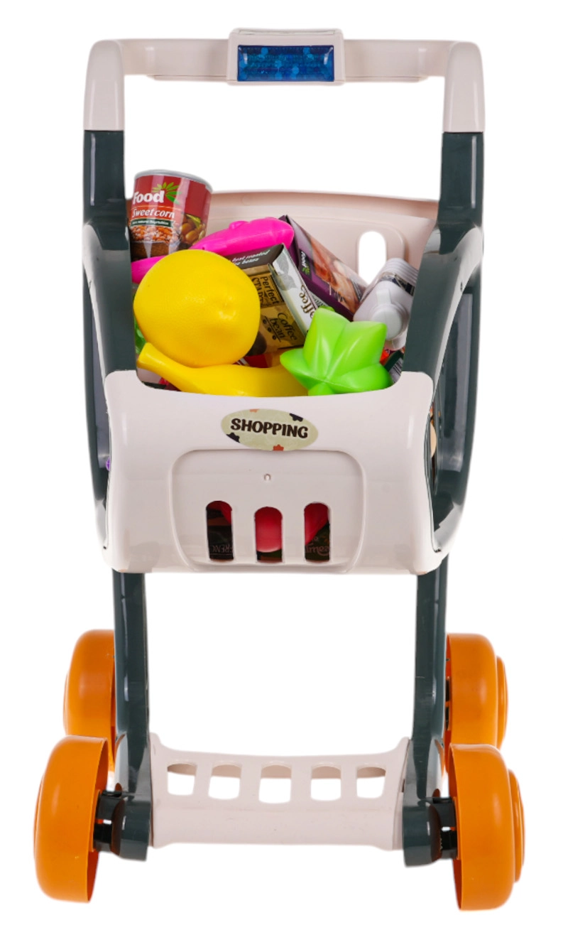 Interaktív bevásárlókocsi 3 éves kortól, amely rengeteg szórakozást és tanulást nyújt. Stabil szerkezettel, forgó kerekekkel és fény- és hanghatásokkal rendelkező vezérlőpanellel rendelkezik. A kék gomb megnyomása után felgyulladnak a villogó LED-ek (zöld, piros, kék), és vidám dalok szólalnak meg. A készlet része 41 kiegészítő a valósághű vásárlószerepjátékhoz. Az 3× AG13 elemek a csomagban vannak.