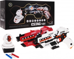 Válassz csapatot (piros, zöld, kék, fehér) és harcolj kb. 40 m hatótávig. Az infravörös jel biztonságos a gyermekek számára és nem irritálja a szemet.