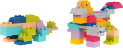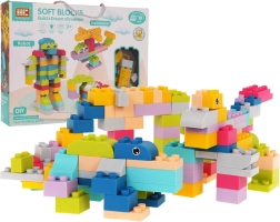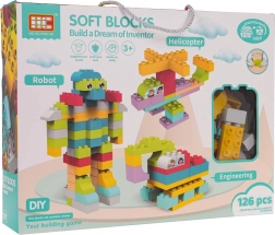 A készlet 126 puha kockát tartalmaz, amelyek biztonságos PVC anyagból készültek, nem tartalmaznak éles széleket és könnyűek a kezelés szempontjából. A kockák élénk színekben készültek, melyek elvarázsolják és ösztönzik a gyermeki képzeletet. Nagyon könnyen karbantarthatók: a kifőzés után is megőrzik színüket és meghajlíthatók, majd visszatérnek eredeti formájukba.