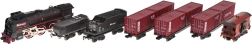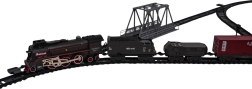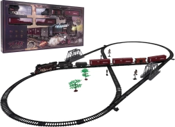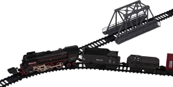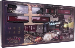 Retro vonatkészlet füstfunkcióval, menetközbeni hangokkal és a csomagban található sínekkel, 3 éves kortól ajánlott. A játék tápellátását egy 3,7 V-os újratölthető akkumulátor biztosítja (a csomag tartozéka), a távirányító 2 x AA 1,5 V-os elemmel működik (nem tartozék). A távirányító egyben az egyik kocsi is. Menet közben a mozdony kéményéből és az oldalairól füst áramlik (víz feltöltése után – a vízcseppentő a készlet része), továbbá világít az elülső részben elhelyezett lámpa. A sínek könnyen csatlakoztathatók, így használatuk biztonságos és masszív.