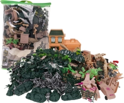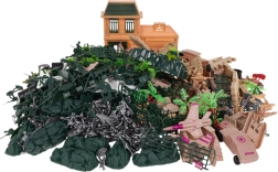 Ez a gazdagon felszerelt készlet minden szobát a fantázia csataterévé változtat. A gyerekek tankokat, páncélozott autókat, terepjárókat, repülőket, hajókat, bázist, falakat, homokzsákokat, szögesdrótot és hordókat találnak benne – mindent, ami a valósághű katonai küldetésekhez kell. A figurák három színben és két méretben érkeznek, így a csapatok és szerepek könnyen megkülönböztethetők.