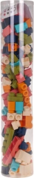 100 darab puha építőkocka 3 éves kortól, biztonságos PVC-ből, éles szélek nélkül. A kockák puhák és hajlékonyak, könnyen tisztíthatók és forrázásnak ellenállók (a színek nem fakulnak). Fejlesztik a kreativitást és a finommotorikát, és praktikus, átlátszó tubusban érkeznek a könnyű tárolás és hordozás érdekében.