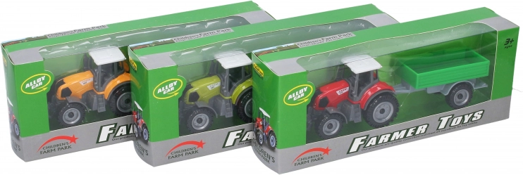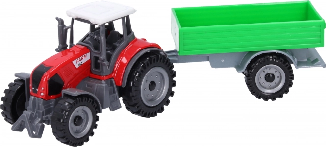 18 cm-es fém traktor pótkocsival, ideális játék 3 éves kortól kis gazdáknak. Masszív szerkezet és szabadon futó kerekek a remek szórakozásért.