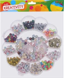 Kreatív, százszorszép alakú gyöngykészlet 13 féle gyöngy mixével és zsinórral az egyszerű felfűzéshez. Ideális gyerekeknek és felnőtteknek karkötők, nyakláncok és egyéb kiegészítők készítéséhez. Gazdag gyöngyválaszték, praktikus 90 g-os csomagolás és minden egyben az azonnali alkotáshoz.