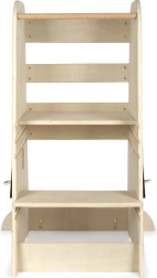 A torony magasságban állítható platformmal és fellépővel rendelkezik, így könnyen alkalmazkodik a gyermek növekedéséhez. A praktikus, lehajtható „pingvin-szárnyak” további tárolóhelyet kínálnak törlőkendőknek és apróságoknak, hogy minden kéznél legyen. 2 éves kortól ajánlott; a gyermeket mindig felnőtt felügyelete mellett kell használni.
