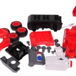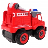 Ez a szétszerelhető tűzoltóautó építést és izgalmas akciót egyaránt kínál. A mellékelt kézi csavarhúzóval és elemes fúróval a kis szerelők kipróbálhatják az egyes elemek összeszerelését, miközben fejlődik finommotorikájuk és képzeletük. A vezérlőpanel behelyezése után az autó önállóan tud előre vagy hátra haladni, illetve RC járműként is irányítható.