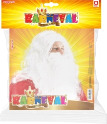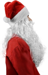 Ez a paróka hosszú fehér szakállal és sapkával hagyományos mikulásos megjelenést kölcsönöz.