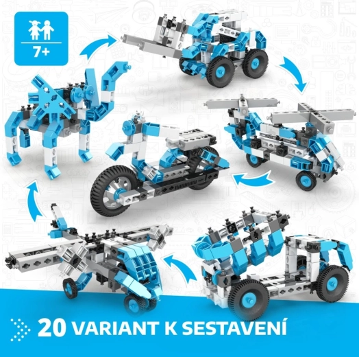 A motorkerékpártól és repülőtől a rakodógépen át a robotokig és állatokig – a gyerekek 20 különféle projektet építhetnek, és bármikor könnyedén át is alakíthatják őket.