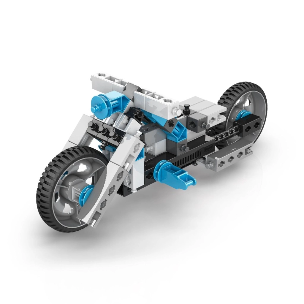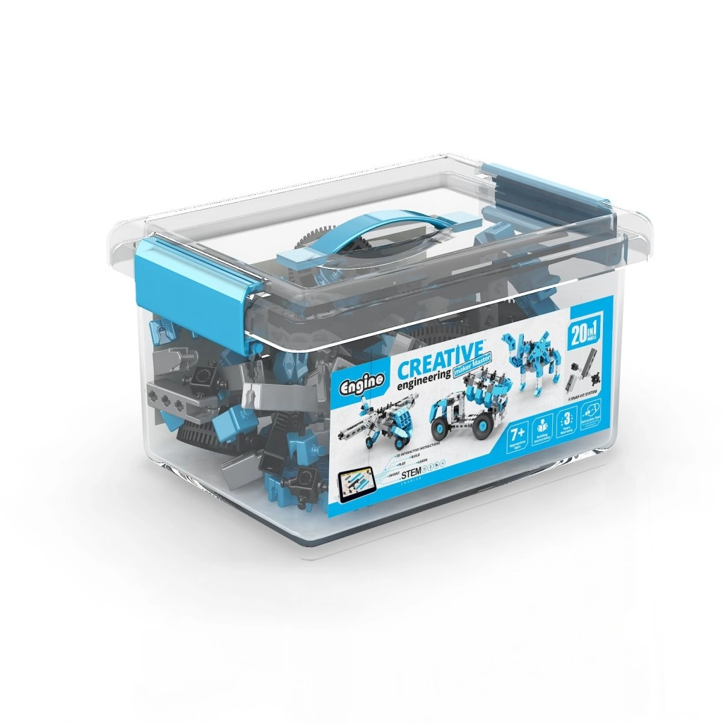 Fedezze fel a kreatív ENGINO építőkészletet, amellyel a 7 évesnél idősebb gyerekek akár 20 különböző modellt is megépíthetnek – a motorkerékpártól, helikoptertől és repülőtől kezdve a munkagépeken át egészen a robotokig és állatokig. A kék–fehér–fekete színű elemek praktikus, átlátszó dobozban kapnak helyet fogantyúval. Az interaktív Engino kidCAD alkalmazás 3D útmutatókat kínál, amelyek fejlesztik a logikus gondolkodást, a finommotorikát és a STEM készségeket.