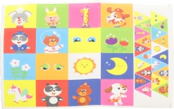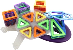 A mágneses építőkészlet 72 különböző színű és formájú elemet tartalmaz, vidám matricákkal együtt. Dobozban csomagolva. A csomag mérete kb. 40×29×6 cm. Ajánlott életkor: 3+