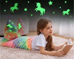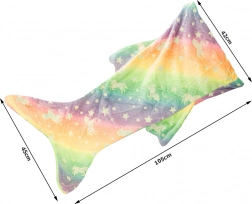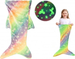 Fedezze fel a tökéletes társat a lazításhoz: egy puha, meleg takarót sellőfark formában. A szivárványos színek és a bájos unikornis- meg csillagminták vidám hangulatot varázsolnak a gyerekszobába – és amikor lekapcsolja a lámpát, a díszítés varázslatosan felragyog. Szuper választás olvasáshoz, mesenézéshez, játékhoz és délutáni pihenéshez.